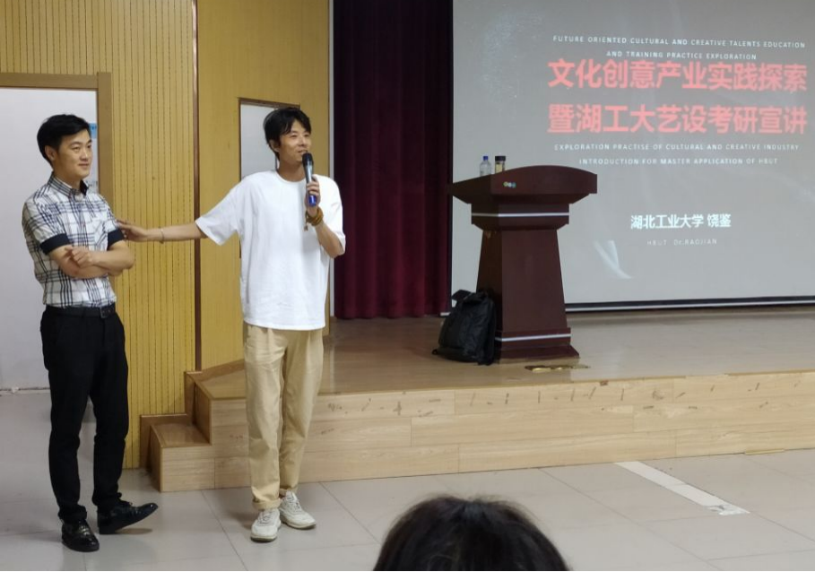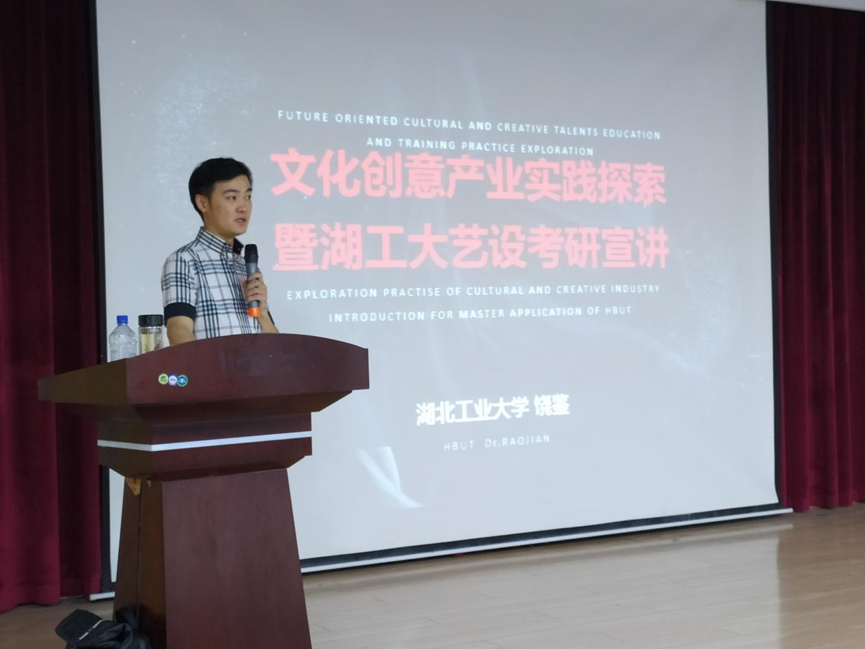 2021年6月21日,由艺术设计学院主办的文创产业实践探索暨湖北工业大学艺术设计学院考研指导的讲座,在艺术设计学院522报告厅顺利举办。湖北工业大学教授、博士、博士生导师,湖北工业大学南湖学者学术带头人,湖北工业大学艺术设计学院副院长,国家社科基金评审专家饶鉴担任本次主讲人,同时出席本次讲座的有艺术设计学院科研副院长宗林;视觉传达系主任李佳龙与系教师代表:陈静、黄菁、何华、杨梦姗、胡飞扬、黄岩参会;我院各专业22届毕业班学生与20级考研班学生近200人参会。