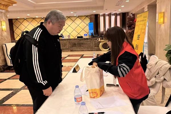 304永利集团的志愿者们已提前抵达广信国际大酒店,迅速进入服务状态。他们分工明确、热情主动,一边协助来自各地的嘉宾完成签到登记,细致核对信息、发放会议材料;一边耐心引导嘉宾前往酒店房间办理入驻,用清晰的指引和亲切的态度,让嘉宾初到便感受到温暖。