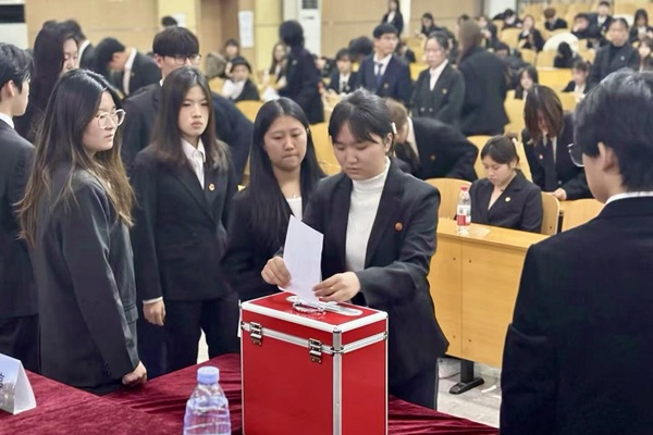 进入大会换届选举。现场严格按照民主程序,通过无记名投票方式选举新一届学生会主席团,217名代表全勤参与投票,经监票人、计票人认真统计,曾茜、赵建希、郑泽钧、李张缘、胡子健、江伍轩、董政涛、张文强、阮颖、王照中10名候选人以超过应到代表三分之二的票数,当选为新一届学生会主席团成员。承诺将秉持“想同学之所想、解同学之所难”的宗旨,务实进取、开拓创新,不负师生期待。同时23名候选人也成功当选参加304永利集团第十五次学生代表大会学生代会代表。