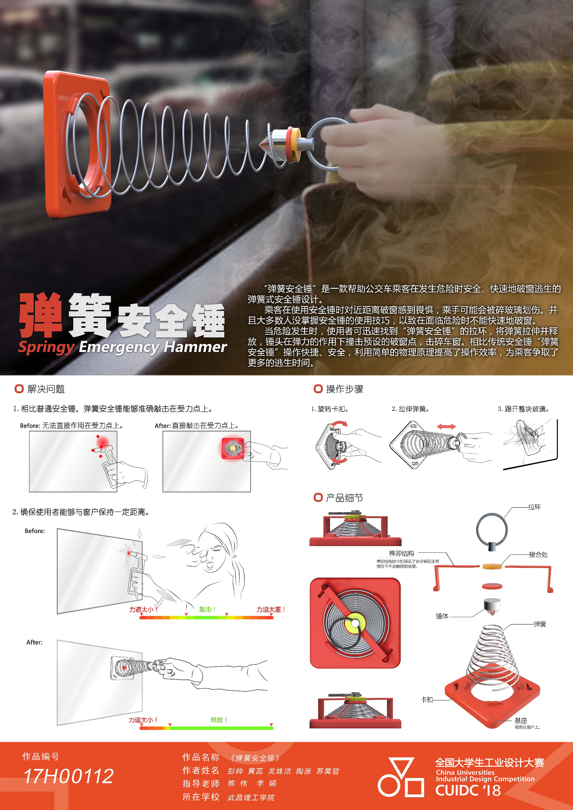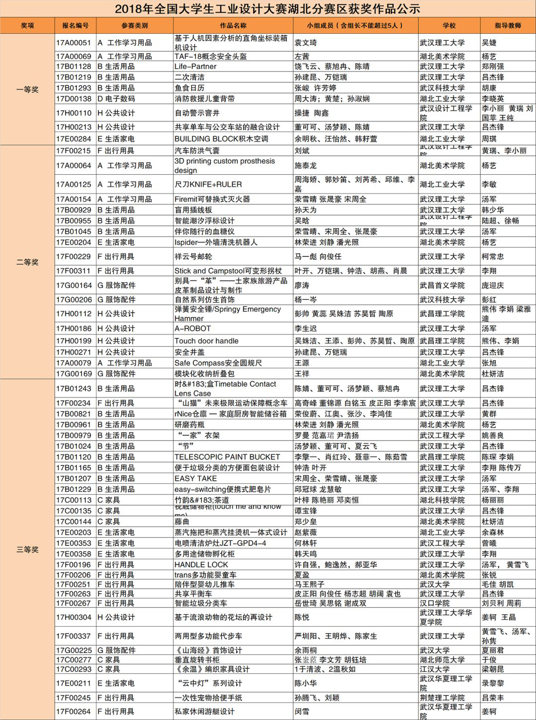 我院产品设计系在“2018全国大学生工业设计大赛”湖北赛区取得佳绩,产品设计系14、15、16级学生共提交设计作品176件,304永利集团获得最佳组织奖。其中彭帅同学团队的作品《弹簧安全锤》、吴姝洁同学团队的作品《Touch door handle》获得二等奖;李擎一同学团队的作品《TELESCOPIC PAINT BUCKET》获得三等奖;王家宝、王君娉、孙力等10组同学的作品获得优秀奖。