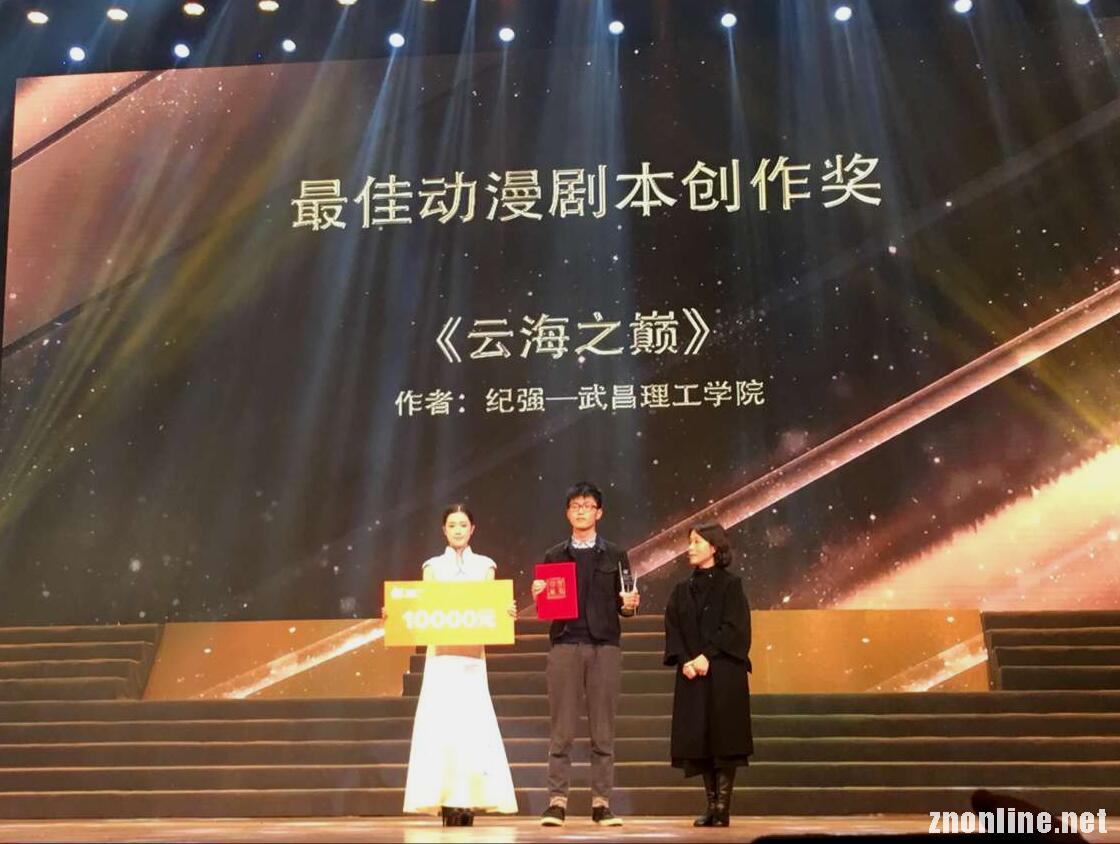 经过初赛、复赛、决赛三轮评选,该校动画系动画1401班纪强的动漫剧本《云海之巅》从众多的作品中脱颖而出,荣获大赛剧本类唯一的最高奖项“最佳动漫剧本创作奖”,省政府领导亲自为纪强同学颁发奖杯、获奖证书和10000元奖金。动画1402班曹莹的作品《油灯记》获剧本类“提名奖”,动画1301班吉文琦的作品《十二生肖》获形象类“提名奖”,分别获得5000元奖金。